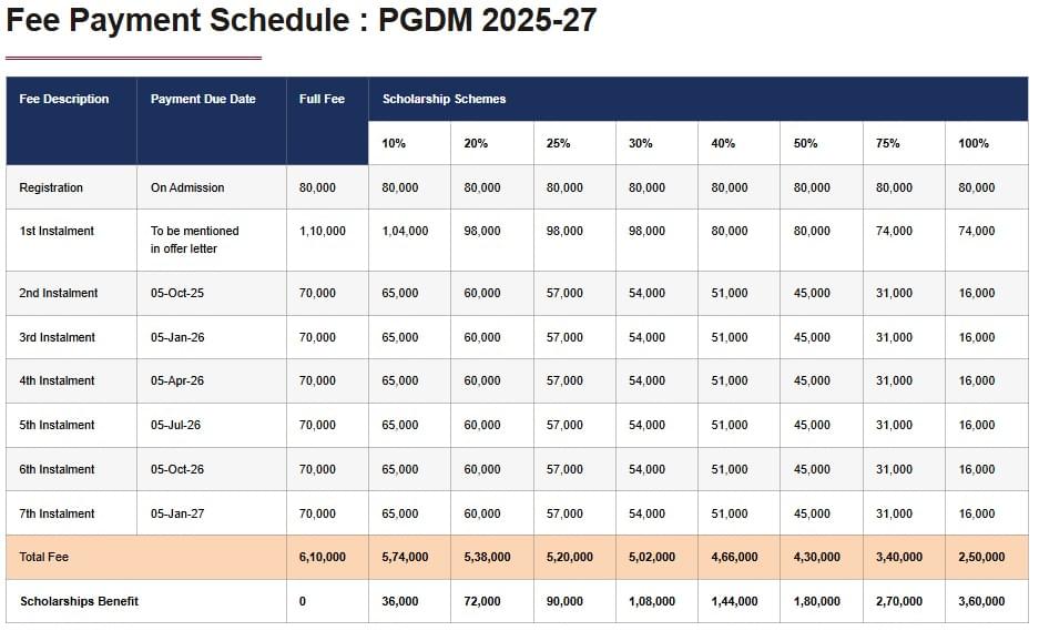| Admission Timeline [MBA/PGDM] | Oct 15, 2025 |