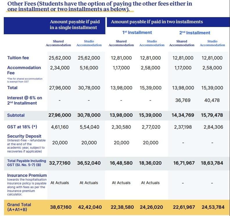 Total Tuition Fees: INR 45,12,160 for General quota candidates.