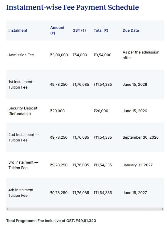 | ISB Mohali | ₹ 49.91 Lakhs |