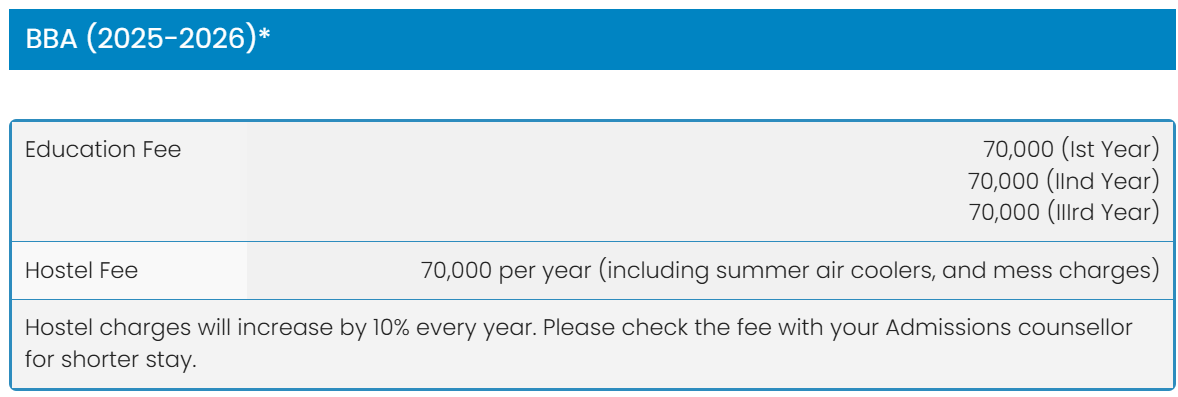 The college has a 10% annual fee hike for new admissions, with total costs for a BBA degree reported between 2 to 4 lakhs INR. Scholarships include a state government scholarship and a 50% tuition fee discount for first-year female students. Faculty are knowledgeable and supportive, conducting classes in Hindi or English and providing extra assistance when needed. Placements have been inconsistent, with a highest package of 9 lakhs INR and an average of 3 lakhs INR, though some report averages around 2.2 lakhs INR.
