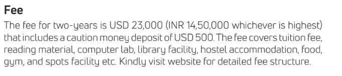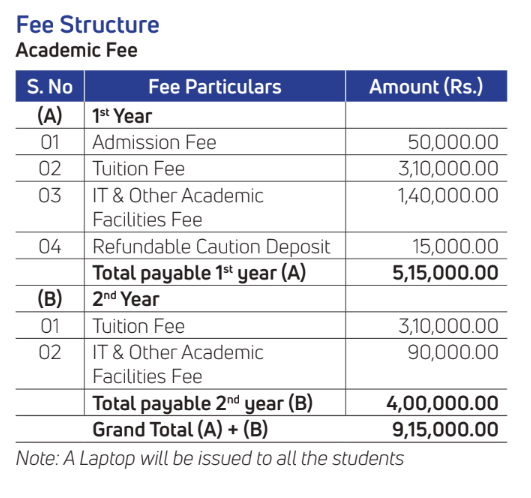 - Candidates need to pay ₹ 5.15 Lakhs in the first year.
