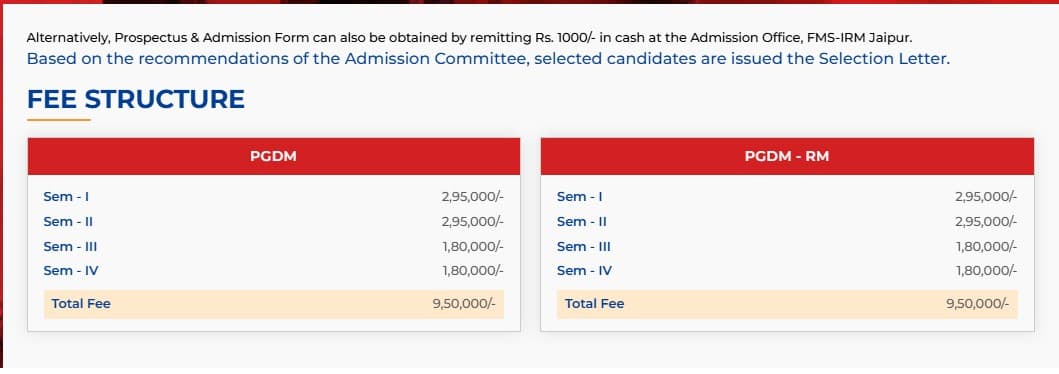 - The total fees for PGDM is ₹ 9.5 Lakhs.
