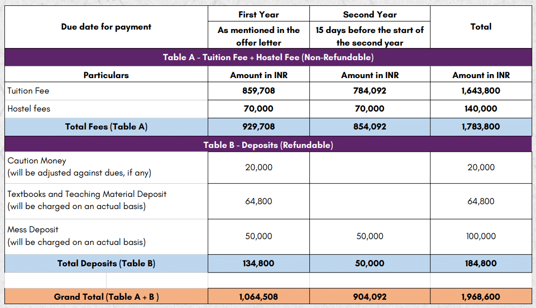 Fee TypeTotal Amount (INR)