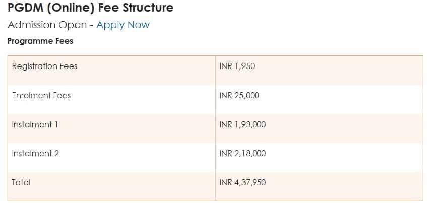 - The total fees for PGDM is ₹ 4.38 Lakhs.