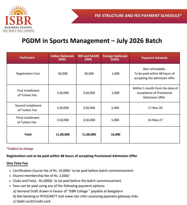 | Fee Type | Total Amount (INR) |