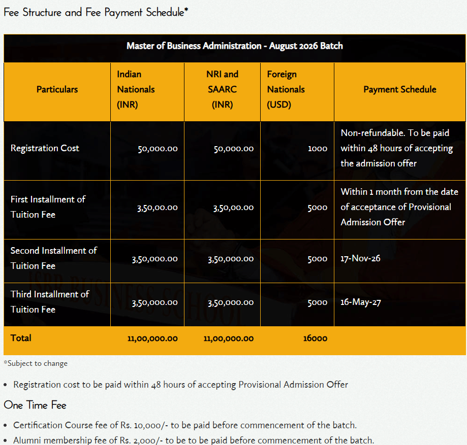 | Fee Type | Total Amount (INR) |