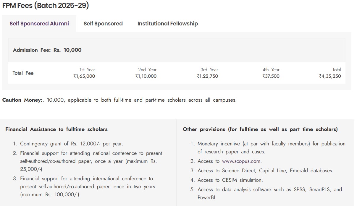 Students have an option to pursue Fellowship from similar colleges such as Jaipuria Institute of Management Lucknow, JIM Noida, Jaipuria Institute of Management, Jaipuria Institute of Management Indore. Similar to Jaipuria Institute of Management, Fellowship at these group colleges is offered Full Time for a duration of 4 Years.