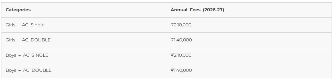 The hostel at Jaipuria Institute of Management, Jaipur offers both sharing and non-sharing accommodations with various amenities such as AC, gym, Wi-Fi, furnished rooms, and attached washrooms. The fees are structured as Rs. 105,000 for AC double occupancy rooms and Rs. 90,000 for non-AC double occupancy rooms, with an additional security deposit of Rs.