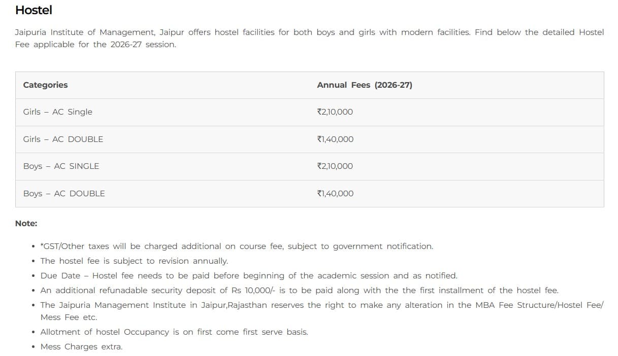 Earlier, PGDM fees at Jaipuria Institute of Management was ₹ 13.75 Lakhs (in 2025) for the entire course duration. This shows a fee increase of ₹ 1 Lakh over the year.