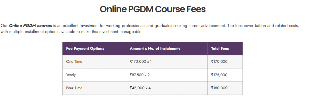 - The total fees for PG Diploma is ₹ 1.7 Lakhs.