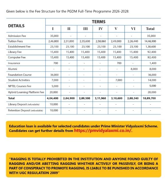 | Submission Date of Application for Admission [PGDM] | Sep 01, 2025 - Apr 30, 2026 Ongoing |