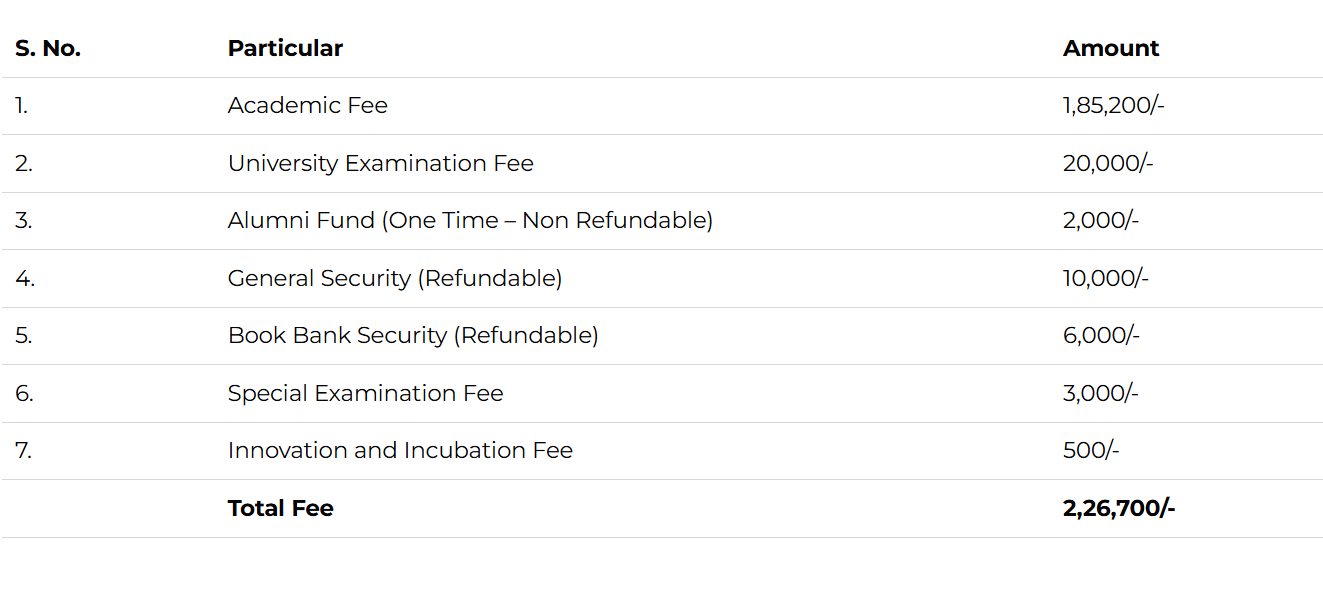 | Fees (2025 - 2026) | Year 1 (in INR) | Year 2 (in INR) |