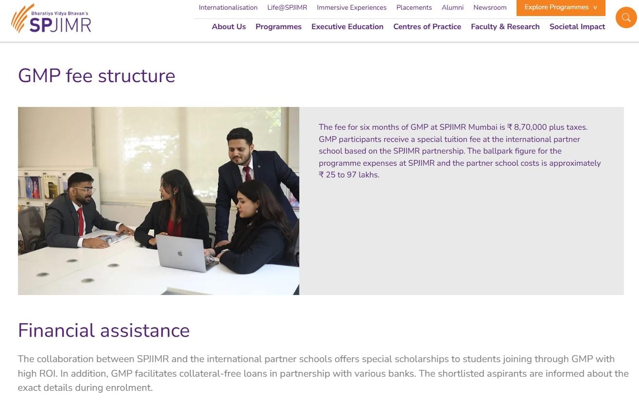 GMP Fees at SPJIMR covers a range of expenses, including tuition fee, course materials, and access to campus facilities.