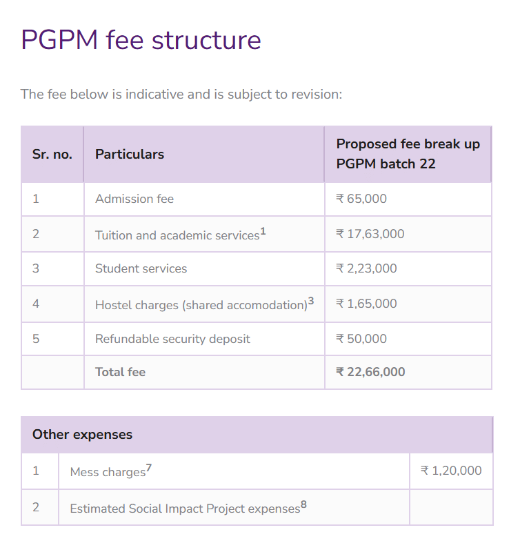 - The total fees for PGPM is ₹ 22.66 Lakhs.