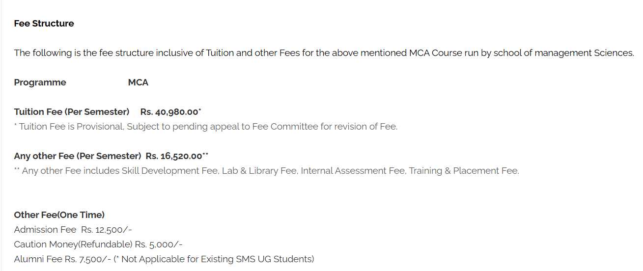 SMS Varanasi MCA fees 2025 is ₹ 1.4 Lakhs for the entire course duration.