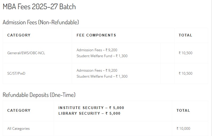 | Fee Type | Total Amount (INR) |