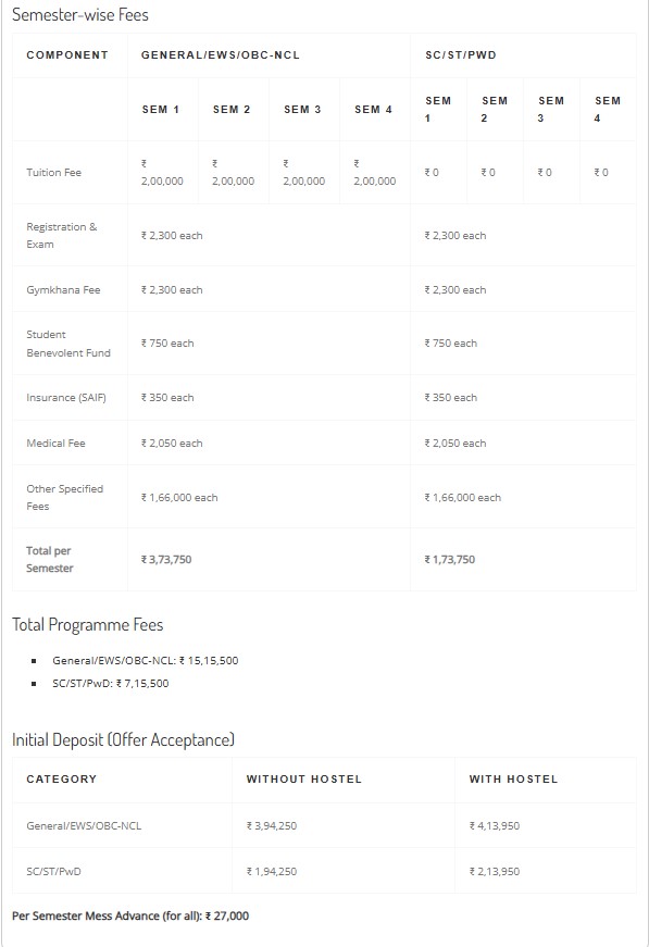 | Semester Wise Fees | ₹363100 | ₹354550 | ₹354550 | ₹354550 |