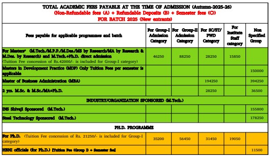 | Fees (2025 - 2026) | Year 1 (in INR) | Year 2 (in INR) | Year 3 (in INR) |