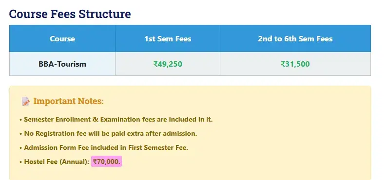 | Semester Wise Fees | ₹49250 | ₹31500 | ₹31500 | ₹31500 | ₹31500 | ₹31500 |