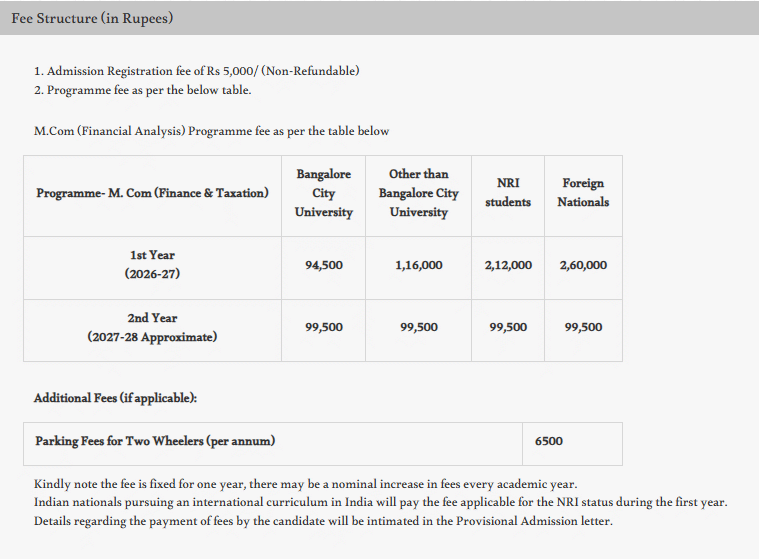 Around 60% of students secure placements, with top companies like the Big 4 and investment banks participating. Undergraduate students have internship opportunities with Goldman Sachs, while postgraduate students can intern with Grant Thornton and VISA, receiving stipends of Rs 22,000 and Rs 40,000, respectively, for roles in audit and finance. These internships are highly regarded. The annual fees range from Rs 85,000 to Rs 90,000, with non-Karnataka students paying about Rs 1,00,000.