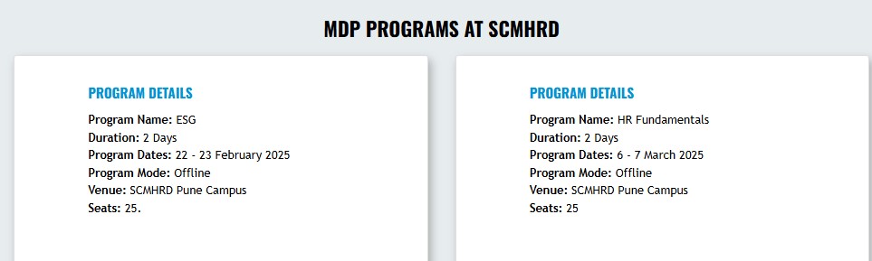 Find detailed SCMHRD MDP fees, eligibility, admission dates, cutoff and ranking below.