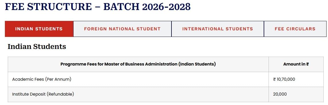 The average placement package has risen to nearly 15 lakh INR per annum, with the highest at 24 lakhs and a median of 15 lakhs. Students secure summer internships from the first semester, achieving 100% placements with an average stipend of 45,000 INR. Notable companies like Credit Suisse, JP Morgan, and ITC recruit for roles in marketing, finance, and more. The Full-time MBA program costs approximately 20 lakh INR over two years.