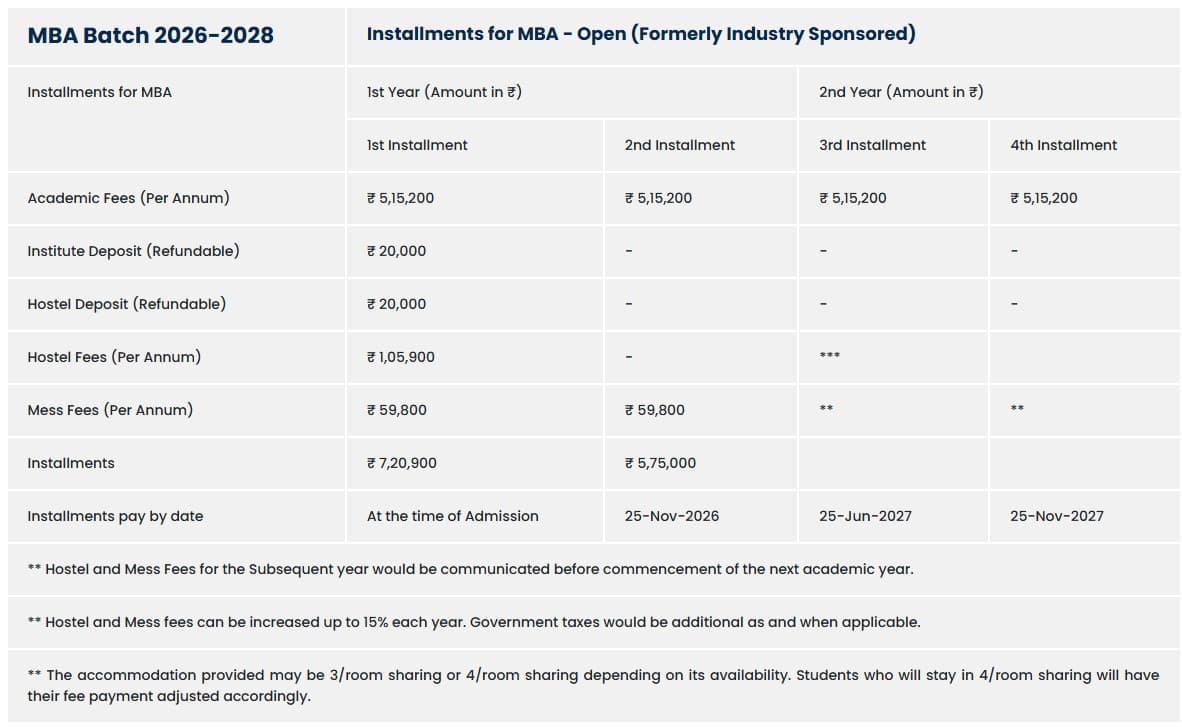 - Candidates need to pay ₹ 9.66 Lakhs in the first year.