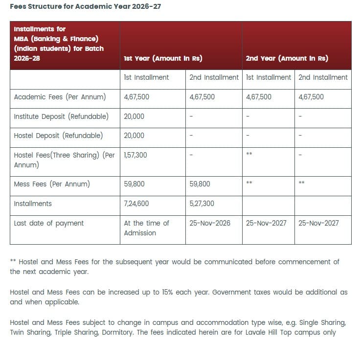 The college offers robust placement opportunities, with an average salary package of around 8 lakhs. Companies from the BFSI sector participate in placements and internships, with key roles in RM, valuations, analyst, and insurance profiles. Students can avail loans from banks such as HDFC Credila, Axis Bank, SBI, and Canara Bank, with interest rates from 8.5% to 10.5%, depending on coverage. Scholarships of 1.5 lakhs are awarded to students who achieve top positions in semester exams.
