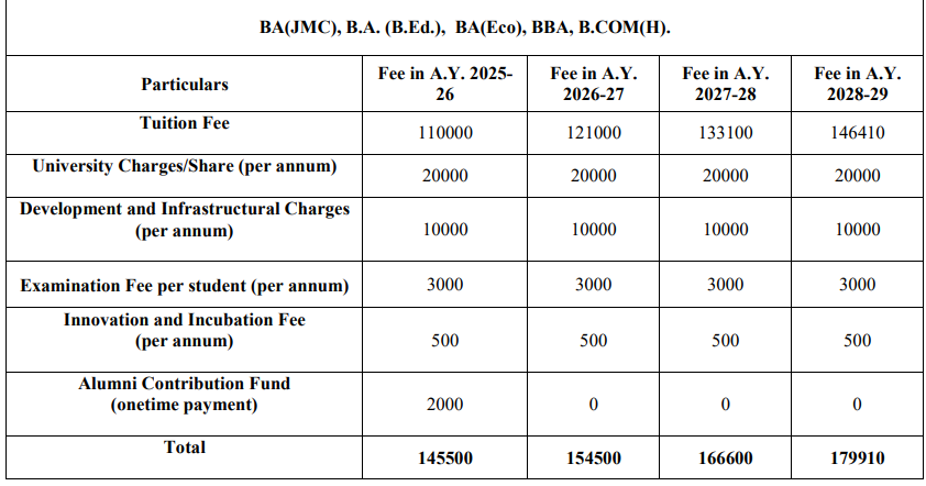 | Fees (2025 - 2026) | Year 1 (in INR) | Year 2 (in INR) | Year 3 (in INR) | Year 4 (in INR) |