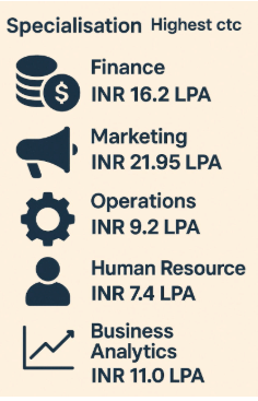 There are a total of 93 recruiters and 125 internship companies. Internships are mandatory, lasting 8 to 12 weeks, and form an integral part of the curriculum. The Corporate Relations Team, along with the Career Enhancement Program, plays a key role in the placement process.