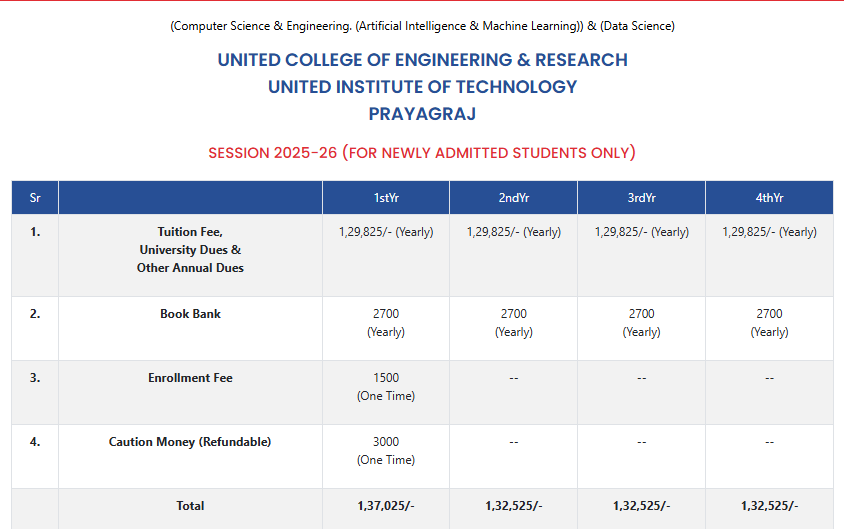 United Institute of Technology Allahabad B.Tech {Lateral} Data Science: Fees 2025, Course Duration, Dates, Eligibility