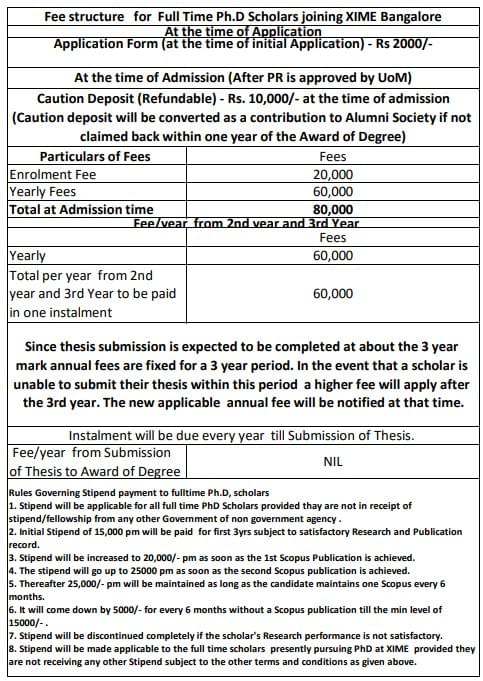 Earlier, Ph.D Management fees at XIME Bangalore was ₹ 2 Lakhs (in 2023) for the entire course duration. This shows that the fee has remained unchanged since 2023.