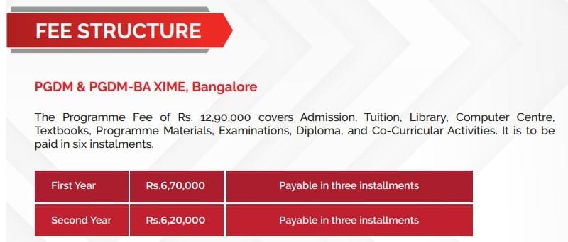 Earlier, PGDM Finance fees at XIME Bangalore was ₹ 12.9 Lakhs (in 2024) for the entire course duration. This shows that the fee has remained unchanged since 2024.