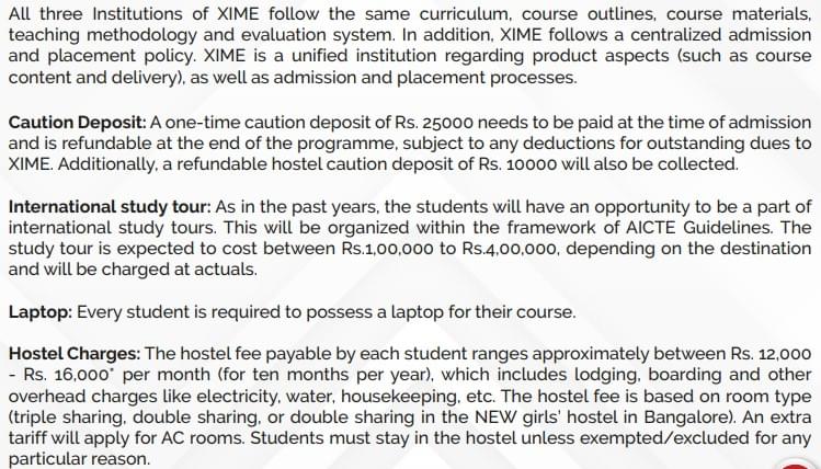- XIME Bangalore Hostel Fee is ₹ 1.1 Lakhs.