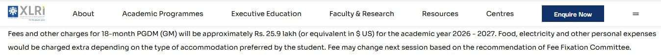 Earlier, PGDM General Management fees at XLRI Jamshedpur was ₹ 25.9 Lakhs (in 2025) for the entire course duration. This shows that the fee has remained unchanged since 2025.