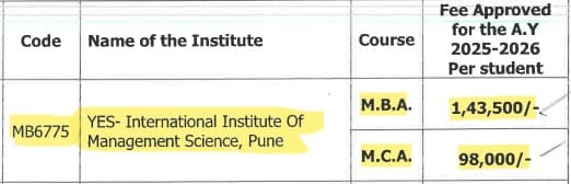 | Fees (2025 - 2026) | Year 1 (in INR) | Year 2 (in INR) |
