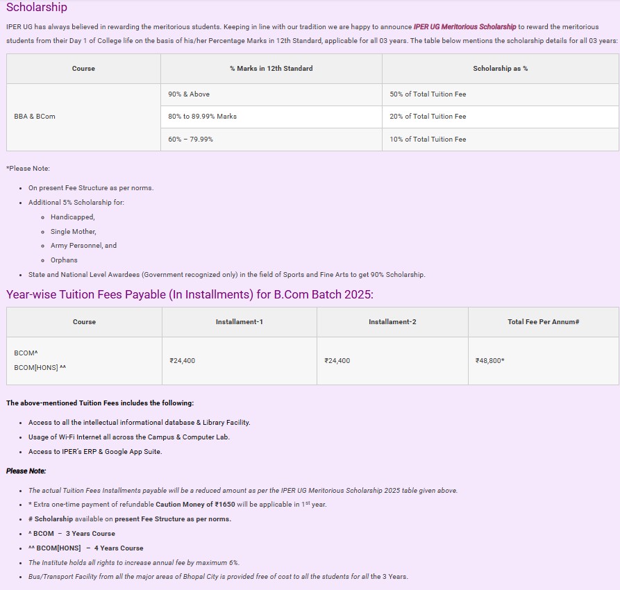 IPER Bhopal B.Com Banking And Insurance fees in first year is ₹ 50,450. The detailed fees is mentioned below.Check IPER Bhopal Admission 2025