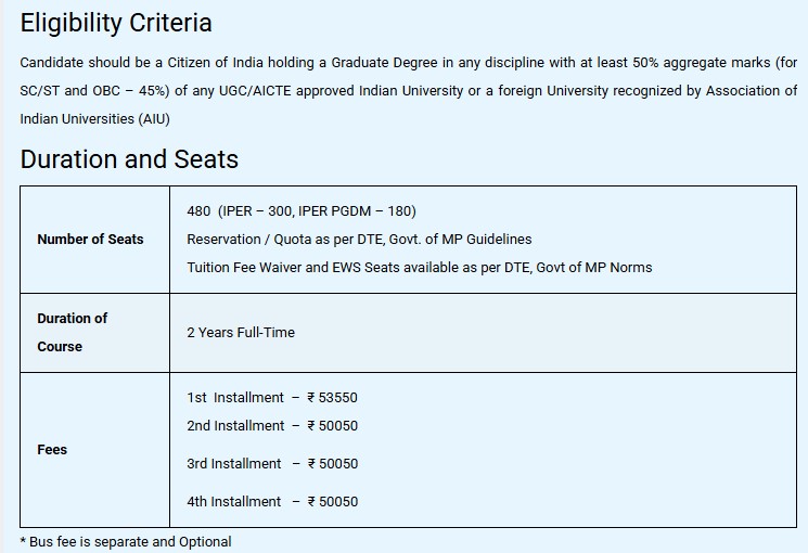 IPER Bhopal offers a comprehensive MBA program with a total of 360 seats, primarily filled through DTE counseling based on CMAT scores. Candidates without a CMAT score can apply through College Level Counseling (CLC). Admission requires a CET exam and a minimum of 65% in graduation. The institute is known for a 100% placement rate and a strong focus on student development, supported by a highly qualified faculty with a 1:5 faculty-to-student ratio.