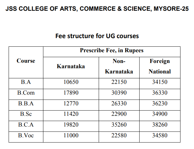 | Fees | Year 1 (in INR) | Year 2 (in INR) | Year 3 (in INR) |