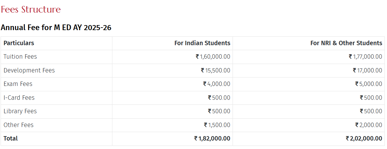 | Fee Type | Total Amount (INR) |