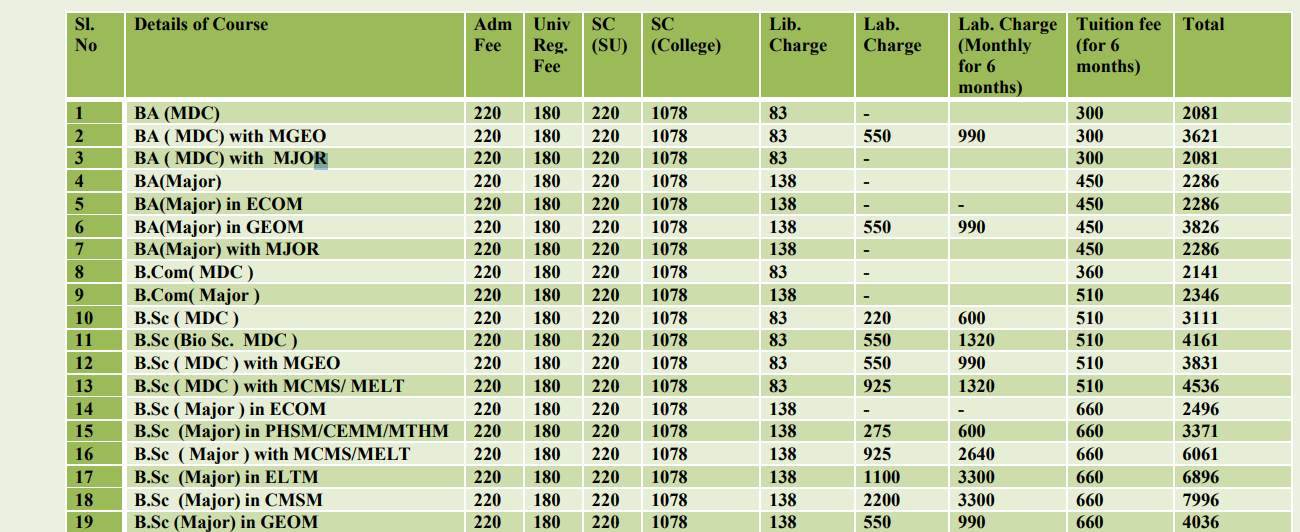 | Tuition Fees | 3621 | 3621 | 3621 | 3621 | 3621 | 3621 |
