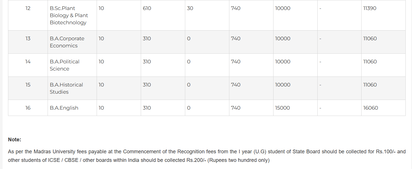 Justice Basheer Ahmed Sayeed College For Women Chennai BA Political Science Fees