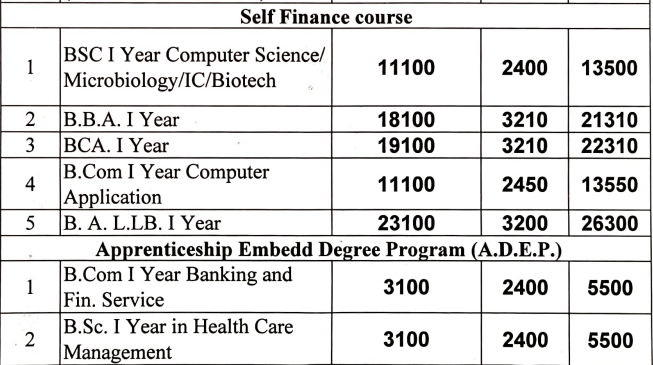| Fees | Year 1 (in INR) | Year 2 (in INR) | Year 3 (in INR) |