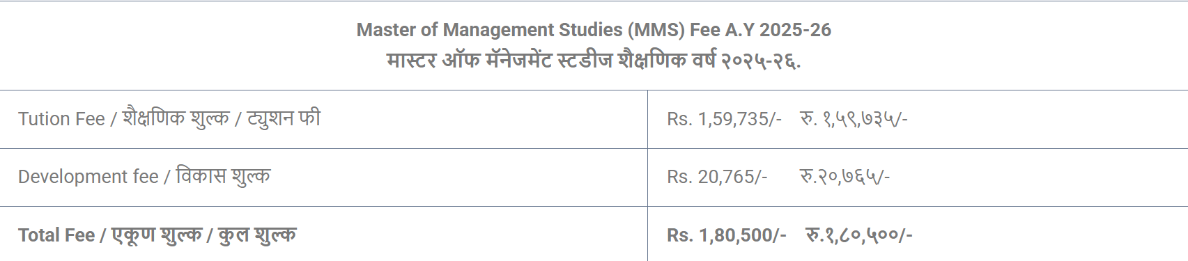 Aditya Institute of Management Studies and Research Mumbai M.M.S fees in first year is ₹ 1.58 Lakhs. The detailed fees is mentioned below.Admissions are offered based on MAHCET. Check Aditya Institute of Management Studies and Research Mumbai Admission 2025