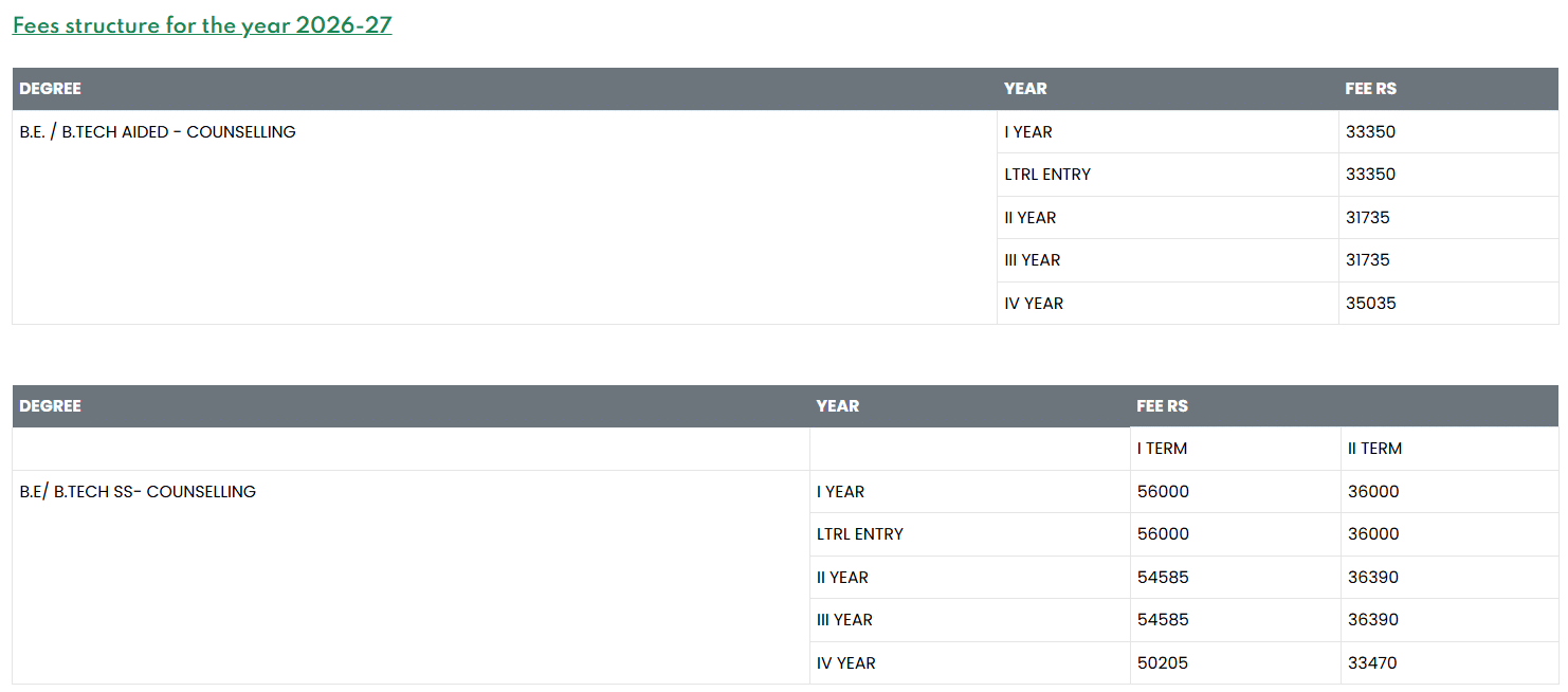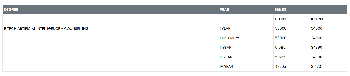 Notably, D.E. Shaw offered the highest package of 52 LPA, while startups provide average packages between 18-20 LPA. A CGPA of 7.5 or higher is required for campus interview eligibility. However, not all students are guaranteed placement. Fees are higher for this department, with management quota students paying 1,17,000 annually and counseling-admitted students paying 57,000, totaling around 3 lakhs for the course. Scholarships are available but limited to one per student, supplemented by government schemes.