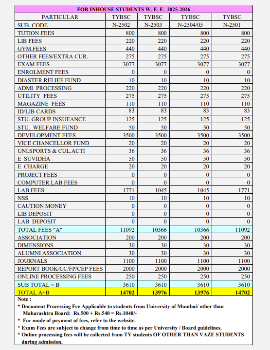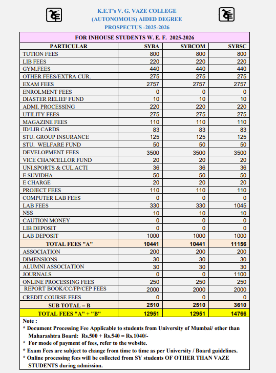 VG Vaze B.Sc Chemistry Fee has not been released yet. For reference you can check the previous year academic fees in the section below.