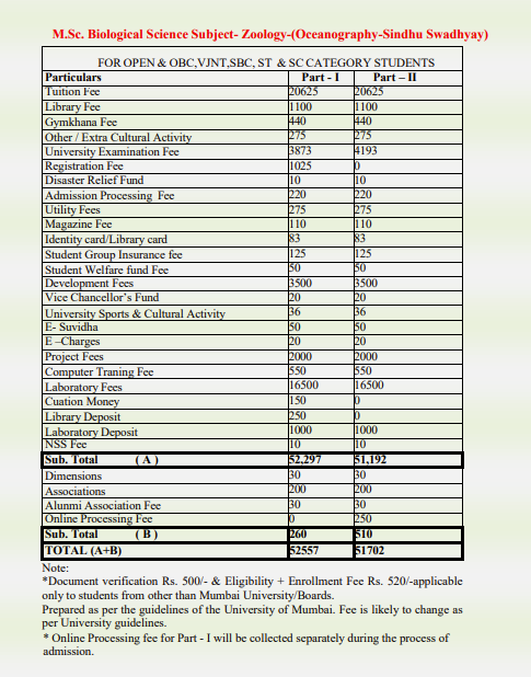 VG Vaze M.Sc Oceanography Fee has not been released yet. For reference you can check the previous year academic fees in the section below.