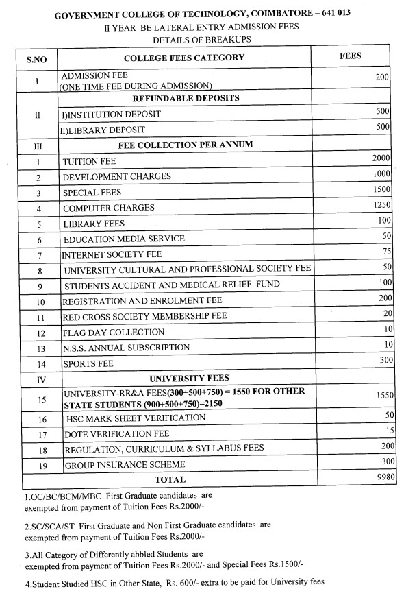 GCT Coimbatore Hostel Fee is ₹ 12,200.
