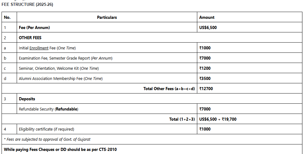 - The first year tuition fees is ₹ 2.55 Lakhs.