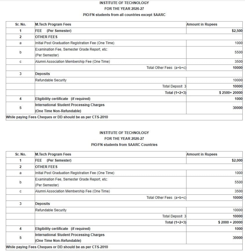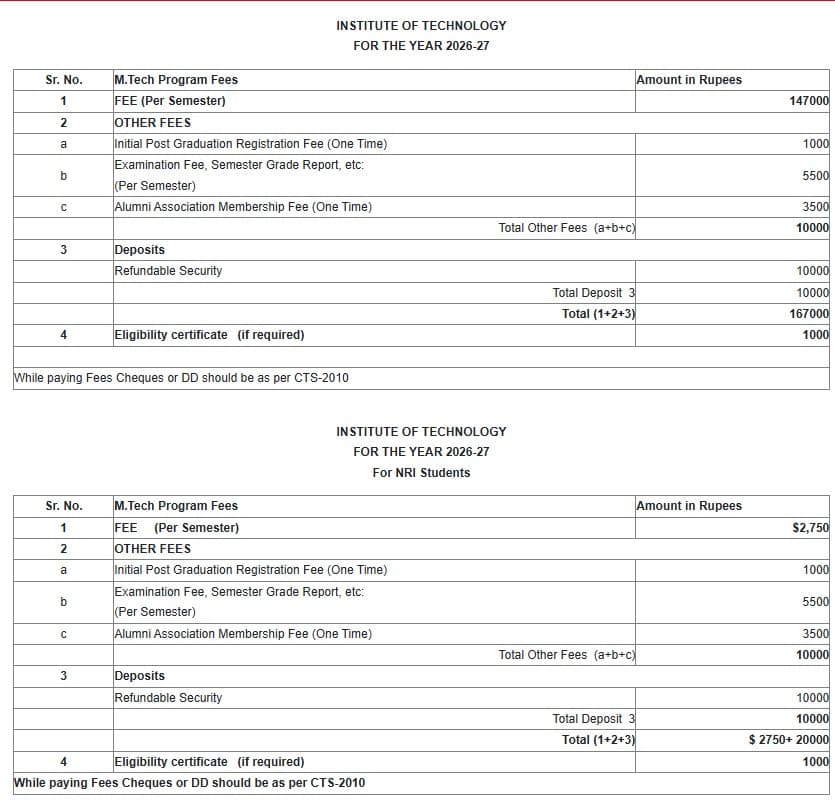 | Submission Date of Application for Admission 2026 [M.Tech] | Jun 15, 2026 |